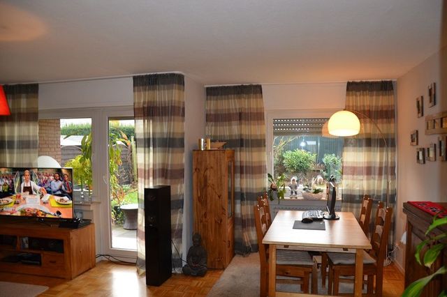 Vom Wohn-/Esszimmer aus ist der Zugang zum eigenen Garten möglich. Diesen kann der Mieter auch nach seinen eigenen Vorstellungen gestalten.